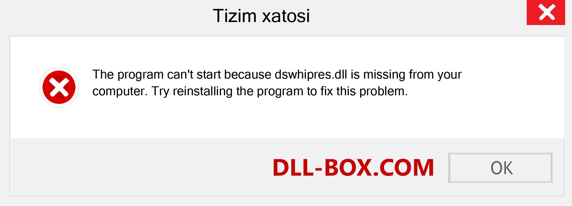 1. Dasturni ishga tushirib bo'lmaydi, chunki dswhipres.dll kompyuteringizda yo'q. Ushbu muammoni hal qilish uchun dasturni qayta o'rnatishga harakat qiling.